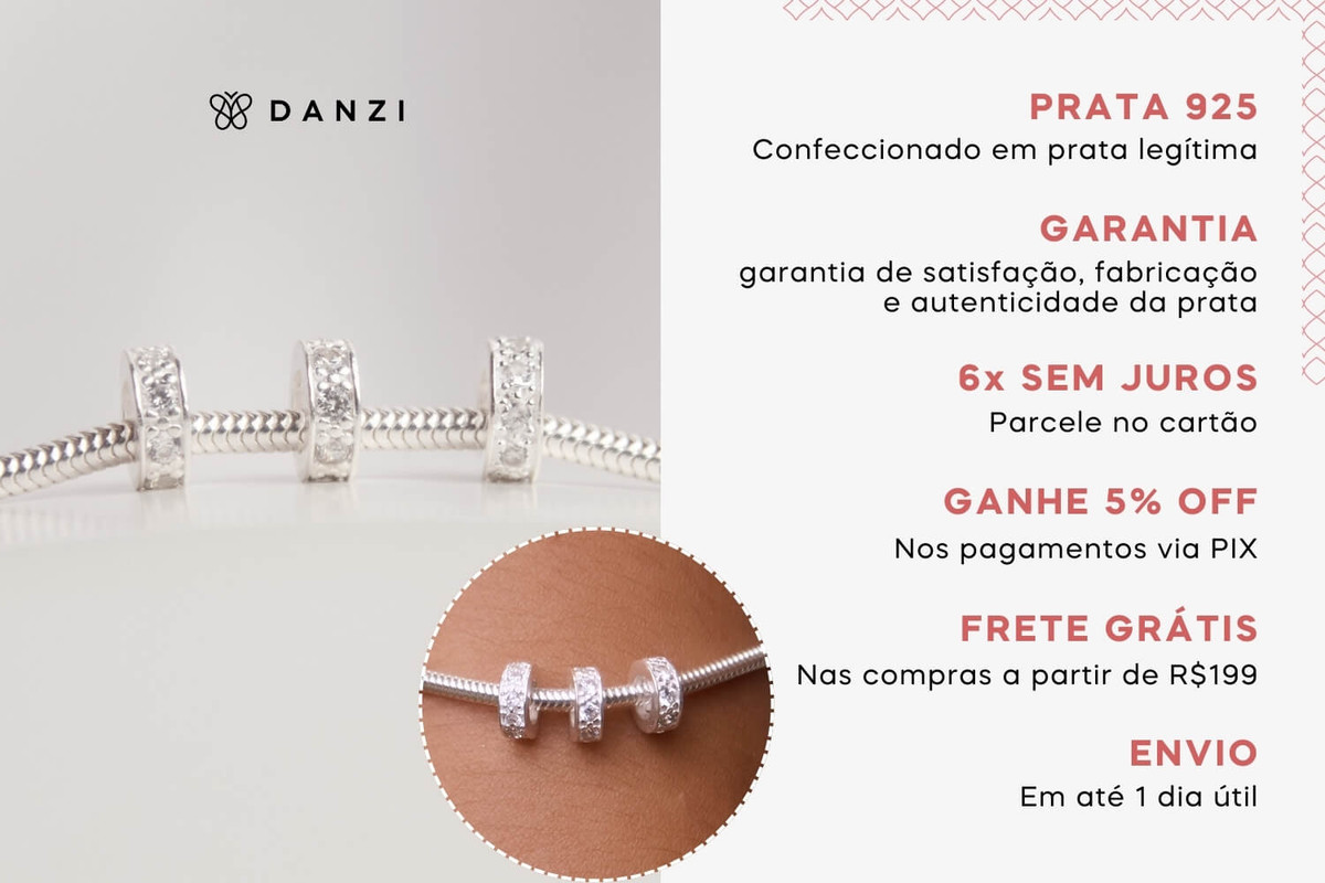 Na Danzi, o envio é feito em até 1 dia útil. Além disso, o Berloque Mini Separador Zircônia Cristal Prata 925 tem garantia vitalícia, para que você se sinta seguro com sua compra. Todos os produtos são enviados em uma caixinha presenteável, pronta para surpreender.